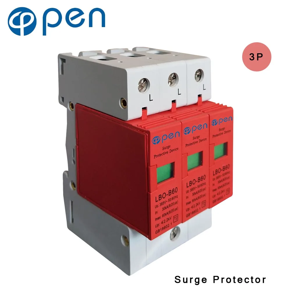 Beste Koop OPEN LBO B60 Serie Huishoudelijke SPD Overspanningsbeveiliging 3 P 30kA 60kA 380VAC Laagspanning Afleider Apparaat Rode Goedkoop