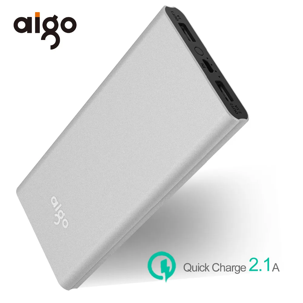 Goede Kopen Aigo 10000 mAh Powerbank voor Xiaomi 2 USB Outports Ultra Slim Li Polymer Power Bank Mobiele Draagbare Externe Batterij voor Iphone Goedkoop