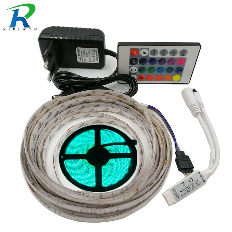 Beste Koop RiRi zal 2835 SMD RGB LED Strip Licht 5 m 10 m LEDs tape LED diode lamp waterdichte flexibele 24 toetsen controller DC 12 v adapter set Goedkoop