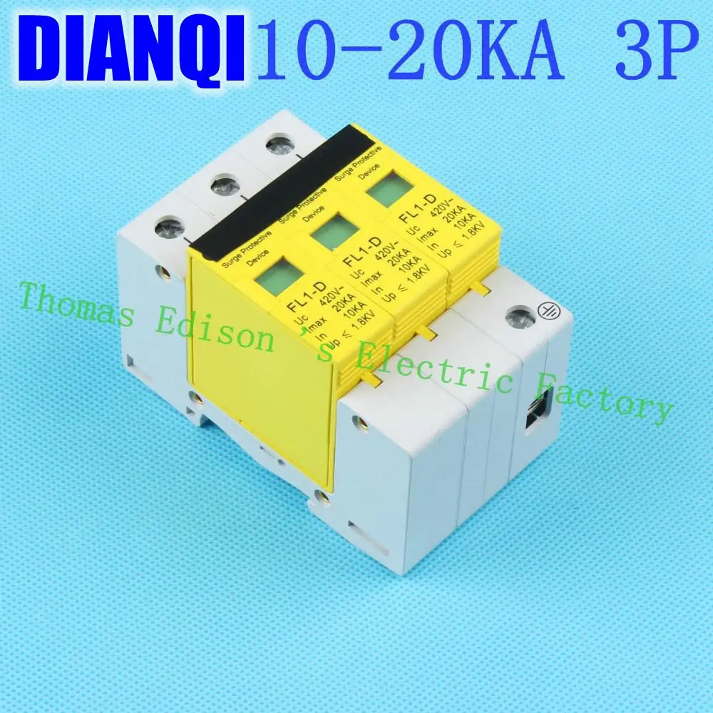 Goede Koop SPD 3 P 10KA ~ 20KA D ~ 420VAC Huishoudelijke Overspanningsbeveiliging Beschermende Lage voltage Afleider Apparaat Overspanningsbeveiliging Beschermende apparaat Goedkoop