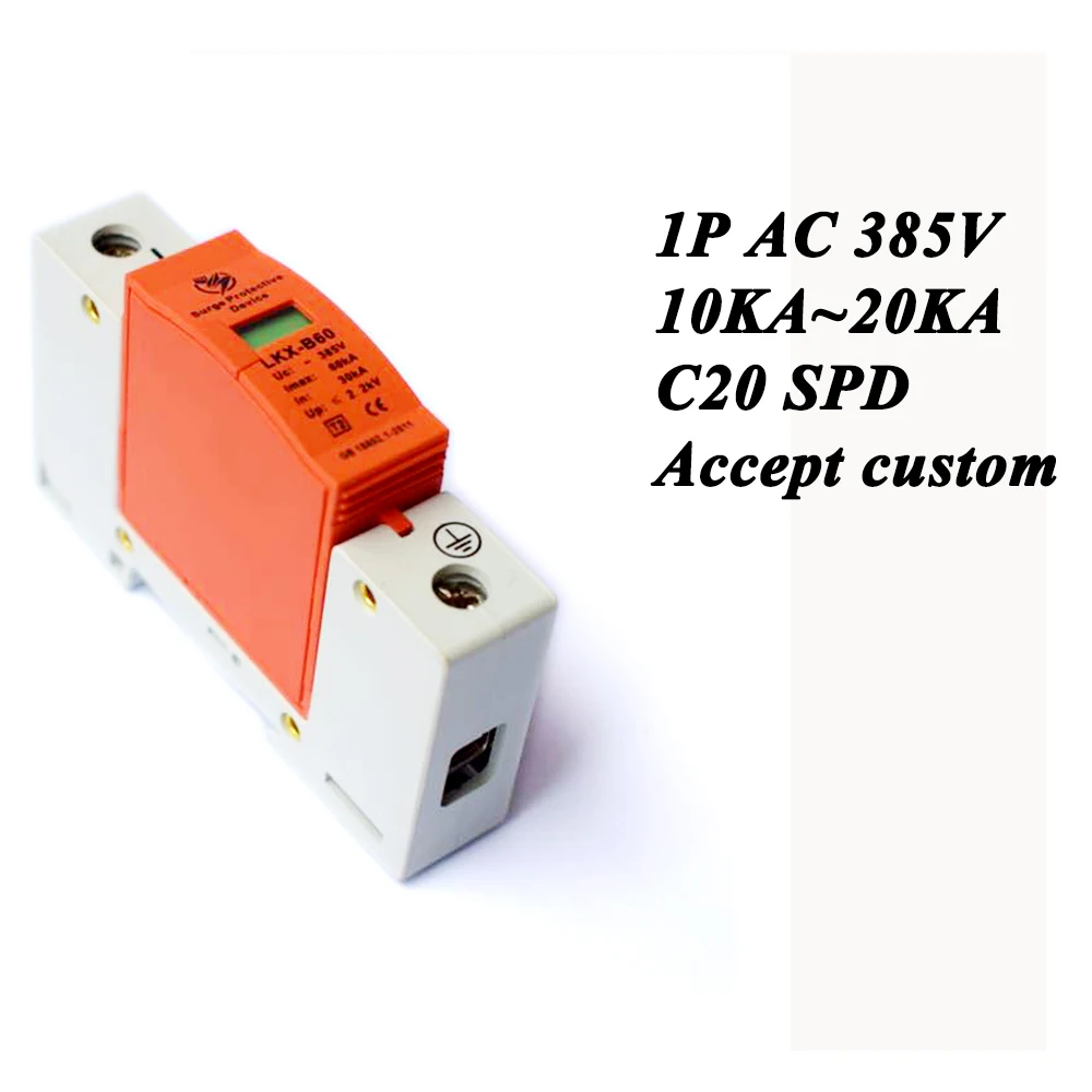 Beste Kopen Hot koop C20 1P 10KA ~ 20KA ~ 385 v AC SPD Huis Surge Protector Beschermende Low voltage Afleider Apparaat bliksembeveiliging Goedkoop