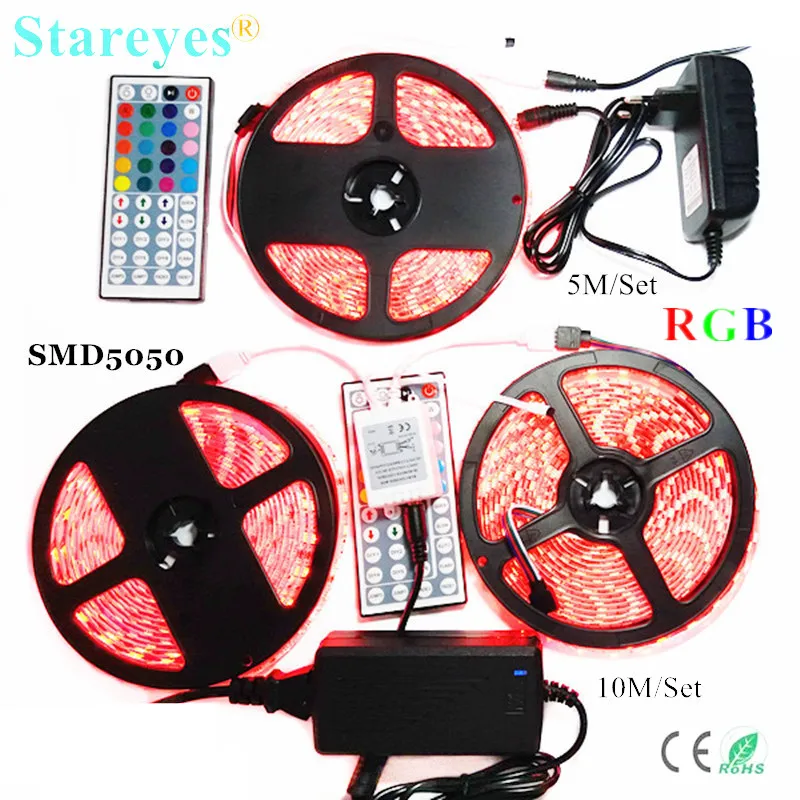 Kopen Goedkoop 1 set SMD 5050 60 LED M 5 m 10 m RGB LED Strip Niet waterdichte Waterdichte tape licht Zaklamp strip + 44 key Afstandsbediening + Power Adapter Online