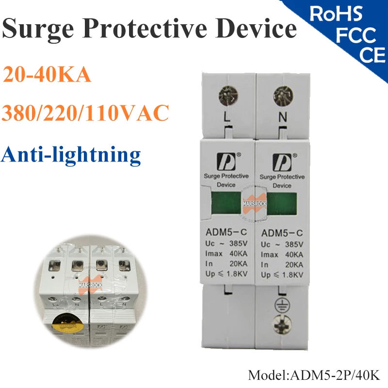 Goede Koop 20 40KA 220 V AC 2 P Din Rail Huis Overspanningsbeveiliging