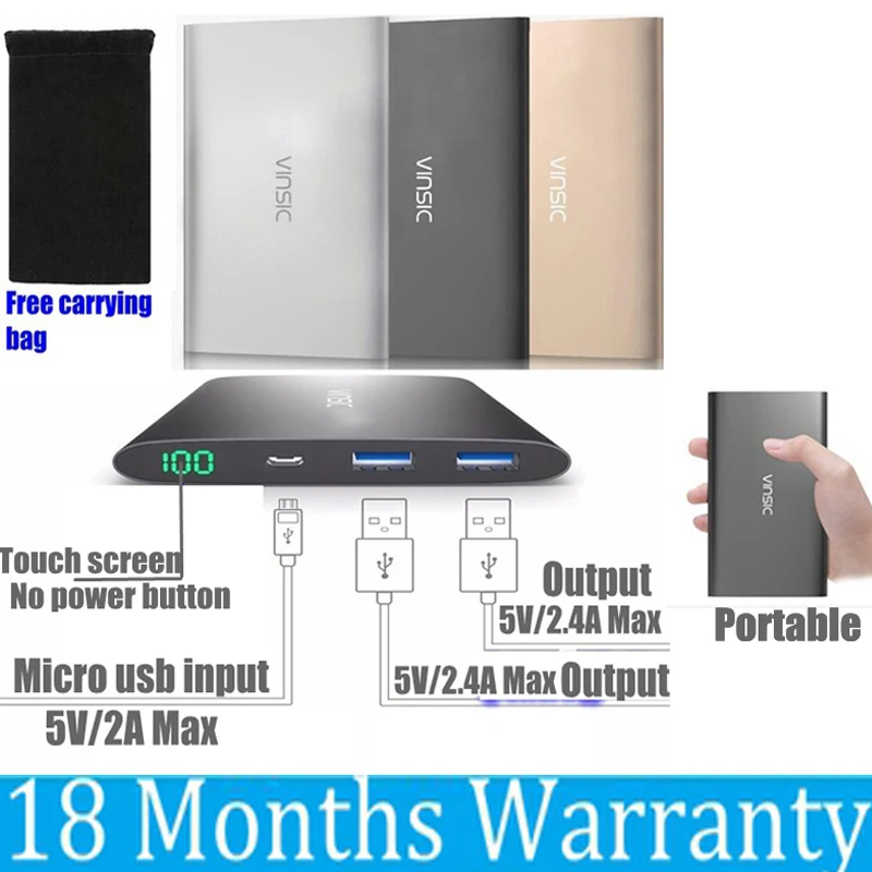 Kopen Goedkoop Vinsic 12000 Mah Power Bank Powerbank Slim Dual USB 4A
