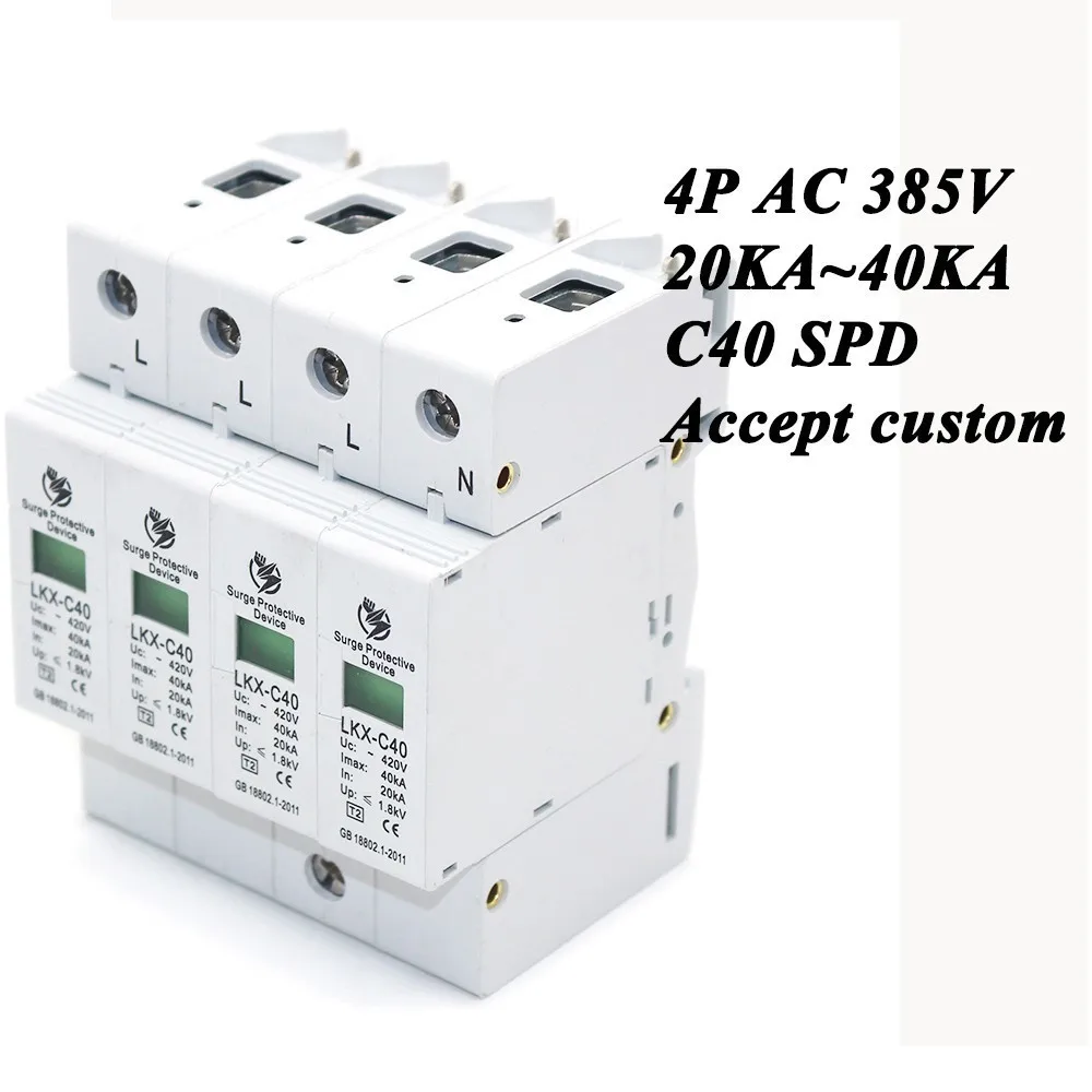 Goede Kopen Hot koop C40 4P 20KA ~ 40KA ~ 385 V AC SPD Huis Overspanningsbeveiliging Beschermende Lage voltage Afleider Apparaat 3 P + N bliksembeveiliging Goedkoop