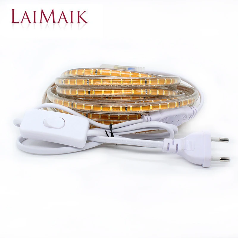 Kopen Goedkoop LAIMAIK led strip licht Waterdichte outdoor met AAN UIT schakelaar AC220V led flexibele strip 3 m 5 m 10 m wit warm wit tape SMD3014 Prijs