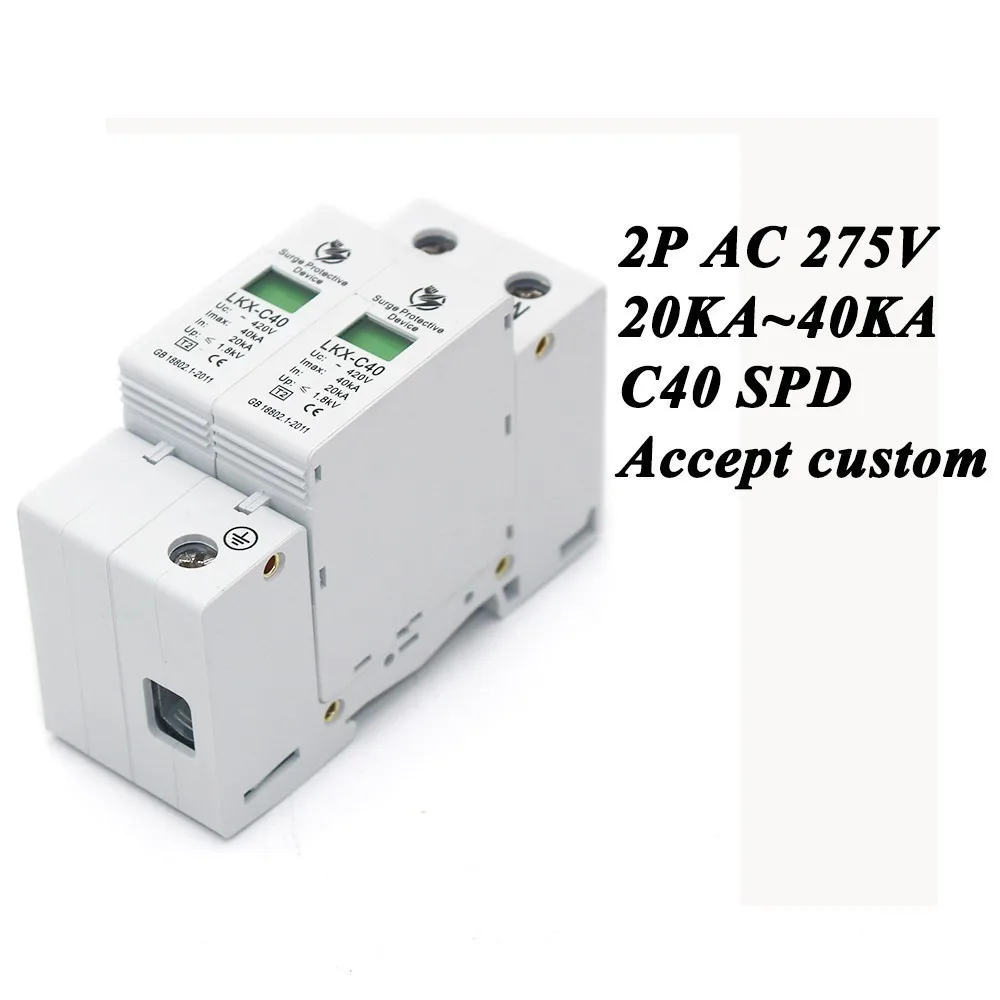 Beste Koop Hot koop C40 2P 20KA ~ 40KA ~ 275 V AC SPD Huis Overspanningsbeveiliging Beschermende Lage voltage Afleider Apparaat 1 P + N bliksembeveiliging Goedkoop