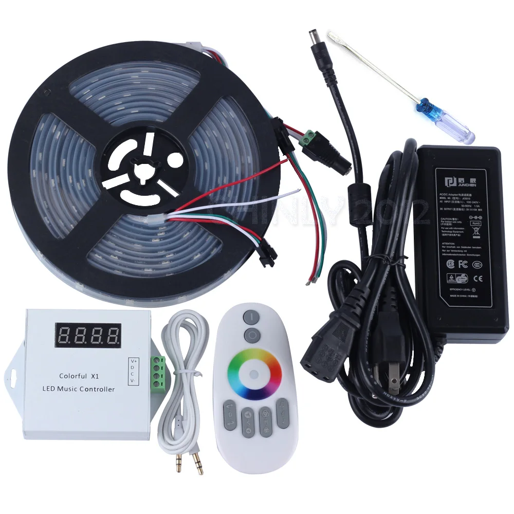 Goede Koop DC5V 5 m 10 m 15 m 20 m 150 leds ws2812b Individueel Adresseerbare led pixel strip waterdicht + Afstandsbediening muziek controller + voeding Goedkoop