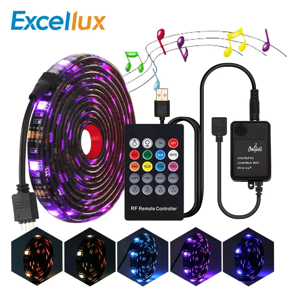 Beste Kopen 5050 RGB USB Led Strip Set Met 20Key RF Afstandsbediening Led Muziek Controller USB LED Light Strip Voor TV Achtergrond lamp Lint Led Tape Goedkoop