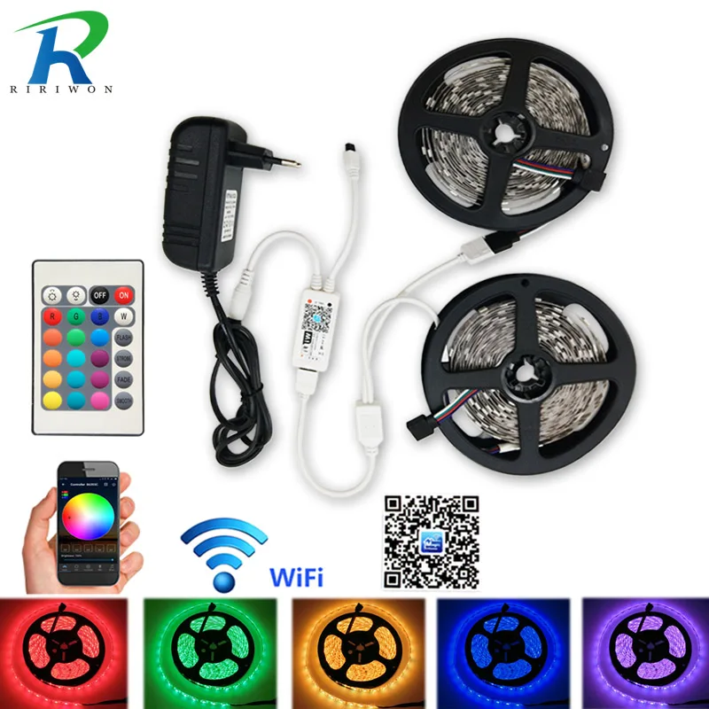 Kopen Goedkoop LED Strip 5050 RGB LED light Strip RGB Strip 10 m 15 m Waterdichte IP65 neon Flexibele Tape Diode Lint DC 12 v adapter set string Prijs