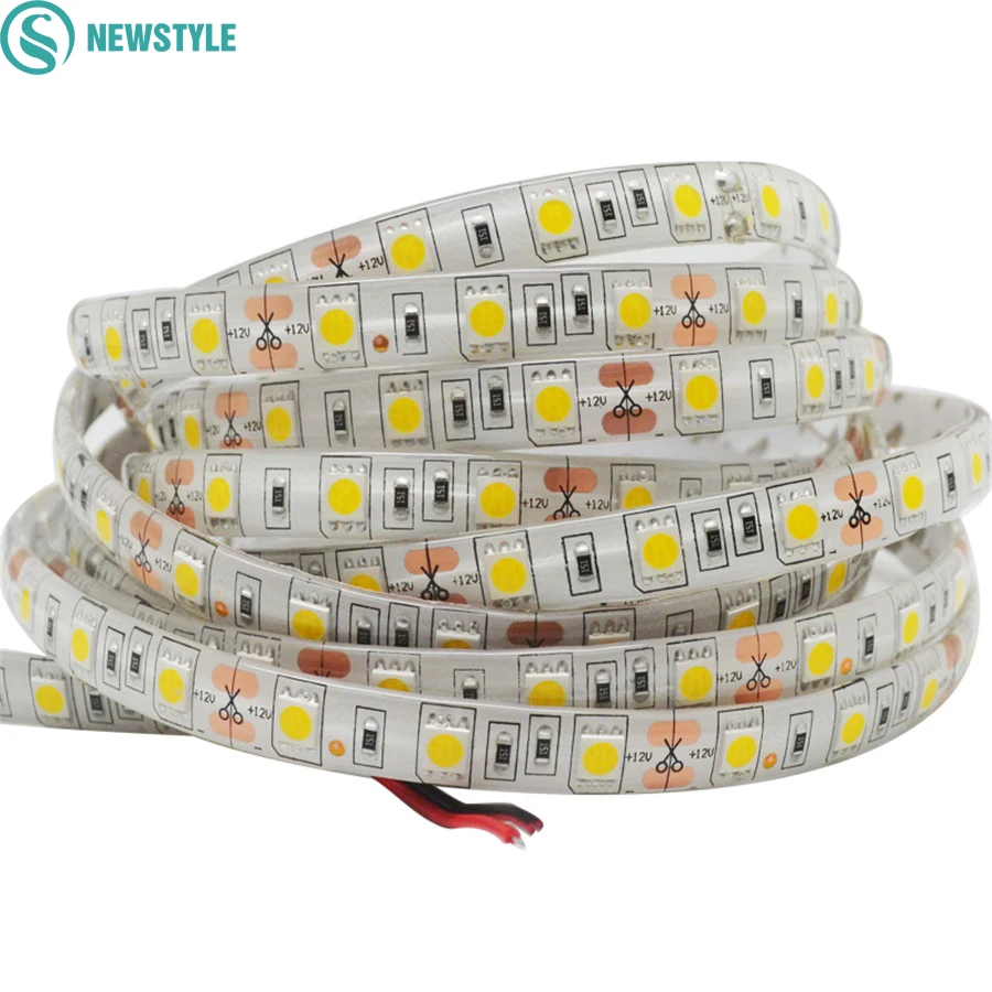 Goede Kopen 5 m DC12V Waterdichte LED Strip 5050 SMD 60Led m Flexibele Led Light Wit, Warm wit, rood, Groen, Blauw, RGB Tape Lint Goedkoop