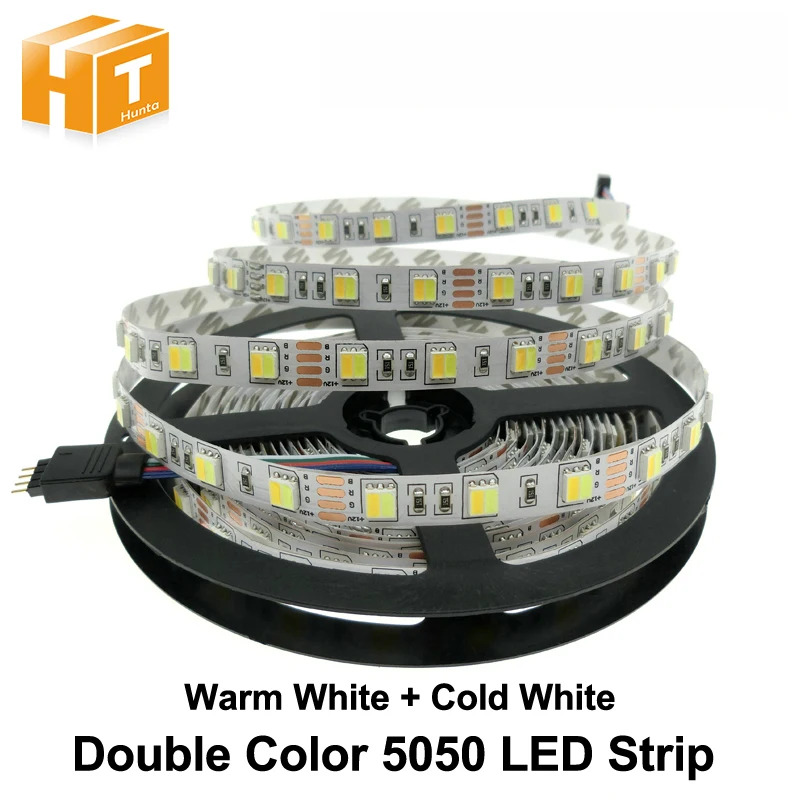 Kopen Goedkoop Dubbele Kleur LED Strip 5025 2835 Een Chip Met Warm Wit en Koud Wit DC12V 5 m Neon Tape strip Licht Online