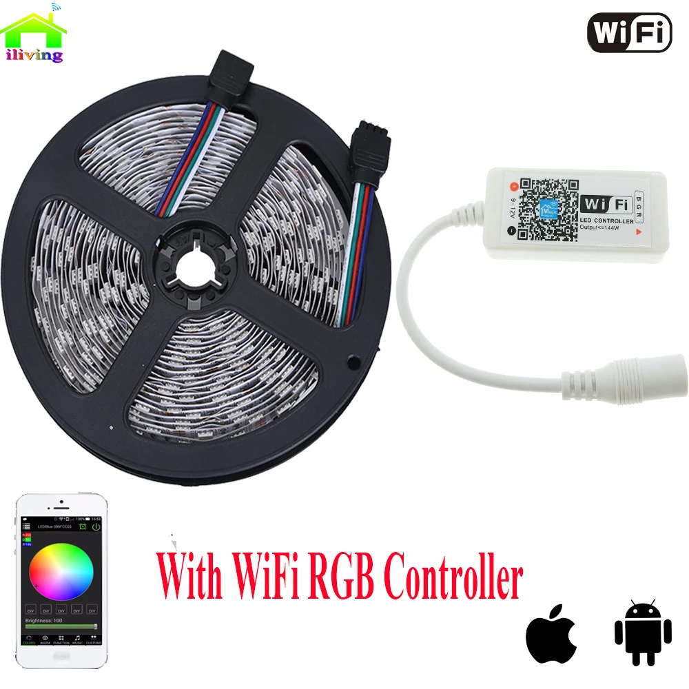 Kopen Goedkoop 5050 IP20 RGB LED Strip DC12V Diode Tape Licht Met draadloze WiFi Mini Controller Smart Controle 44 Key Ir afstandsbediening Controller Online