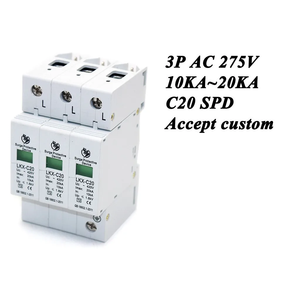 . Goede Koop Hot koop C20 3P 10KA ~ 20KA ~ 275 V AC SPD Huis Overspanningsbeveiliging Beschermende Lage voltage Afleider Apparaat 2 P + N bliksembeveiliging Goedkoop.