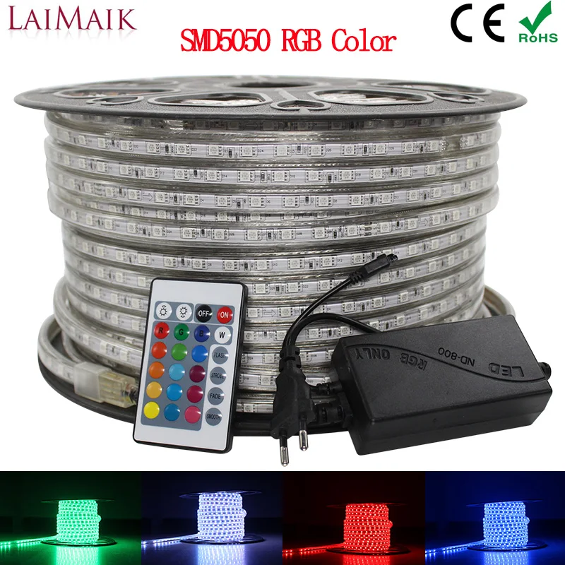 Beste Kopen LAIMAIK RGB LED Strip Licht 5050 Waterdichte IP67 AC 220 v rgb verlichting 60 leds m 5050SMD Met draadloze controller plug led verlichting Goedkoop