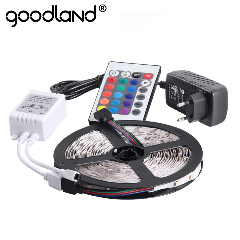 Beste Kopen Goodland RGB LED Strip Licht 3528SMD Flexibele Led Tape Lamp 5 m DC12V LED Strip Voeding 2A IR afstandsbediening Goedkoop