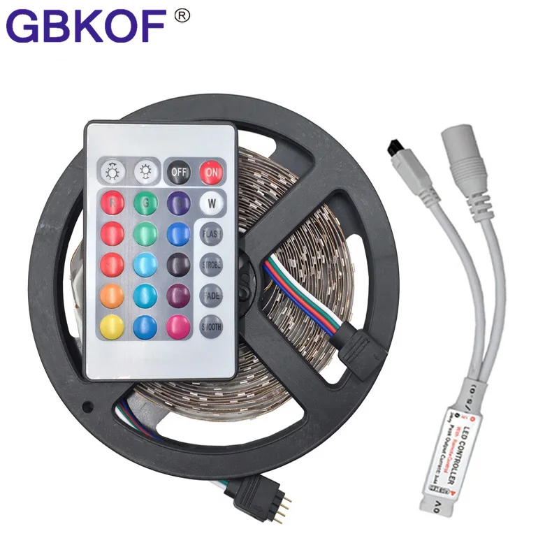 Beste Kopen Niet waterdichte RGB 5050 3528 LED Strip Licht 5 M 300 Leds 60 LEDs M Ruban Led Tape Diode Met 24Key 44key Muziek Afstandsbediening Goedkoop