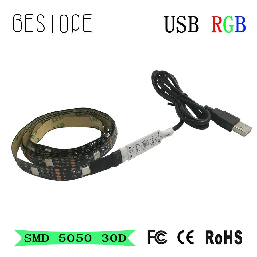 . Beste Kopen BESTOPE DC 5 V USB LED Strip 5050 NIET Waterdicht RGB LED Licht Flexibele 1 M 3Key Remote Voor TV achtergrond Verlichting Goedkoop.
