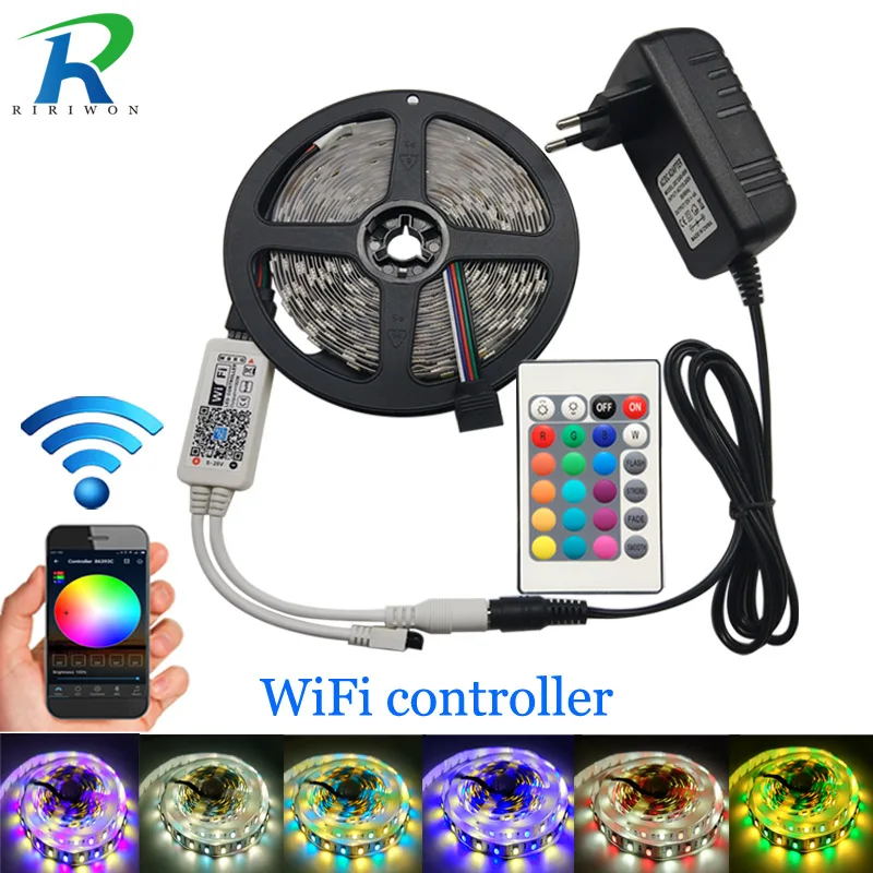 Kopen Goedkoop LED Strip 5050 RGB RGBW RGBWW WiFi 10 m 5 m DC 12 v 5050 RGB LED Strip RGBW streep Flexibele Licht WiFi 24 toetsen controller adapter Online