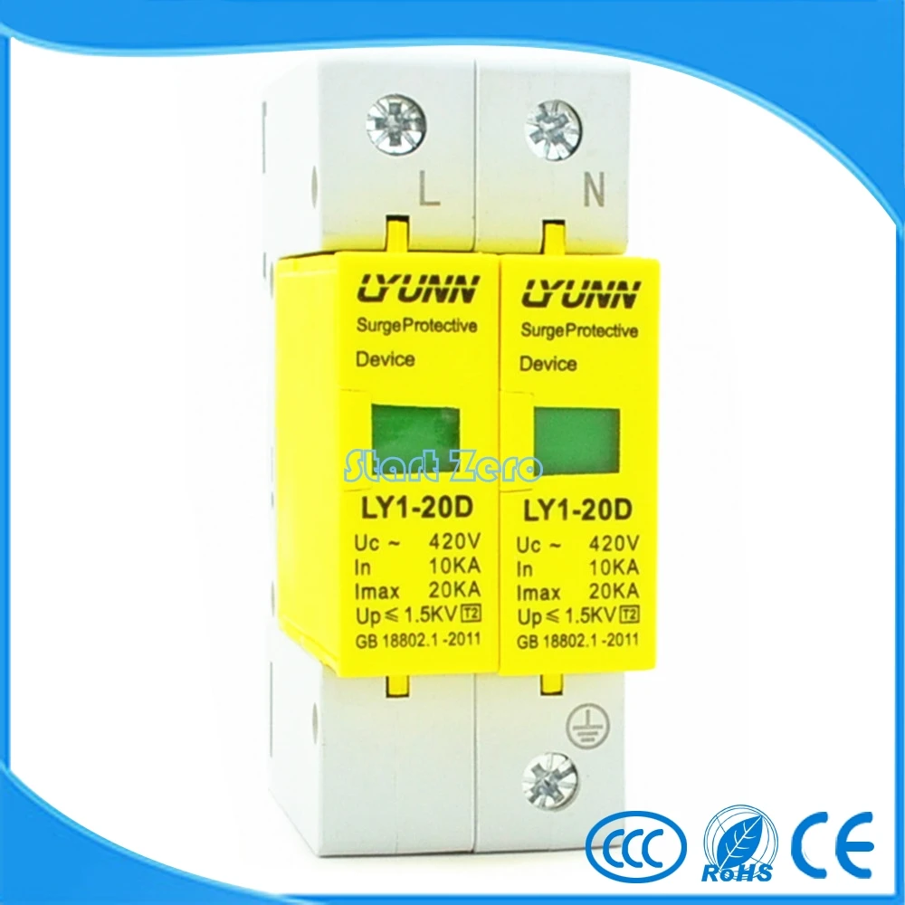 Beste Koop Hoge kwaliteit SPD 420 V 10KA ~ 20KA Huis Overspanningsbeveiliging Beschermende Lage voltage Afleider Apparaat 1 P + N Goedkoop.