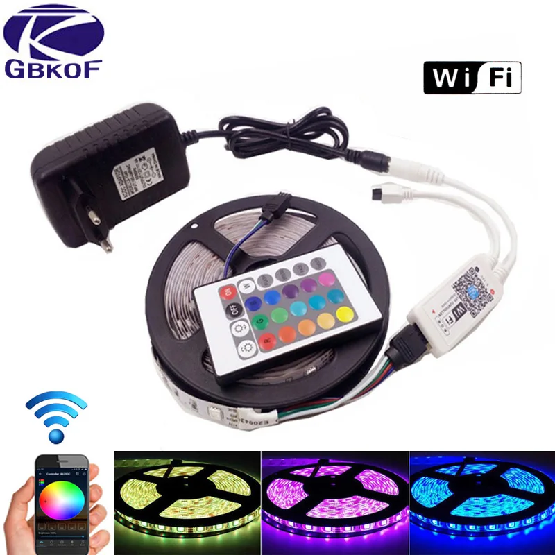 Beste Kopen RiRi zal SMD5050 RGB Waterdichte LED Strips Licht Flexibele 30 leds m LED Tape Diode 5 m 10 m wifi Controller DC 12 v Voeding set Goedkoop