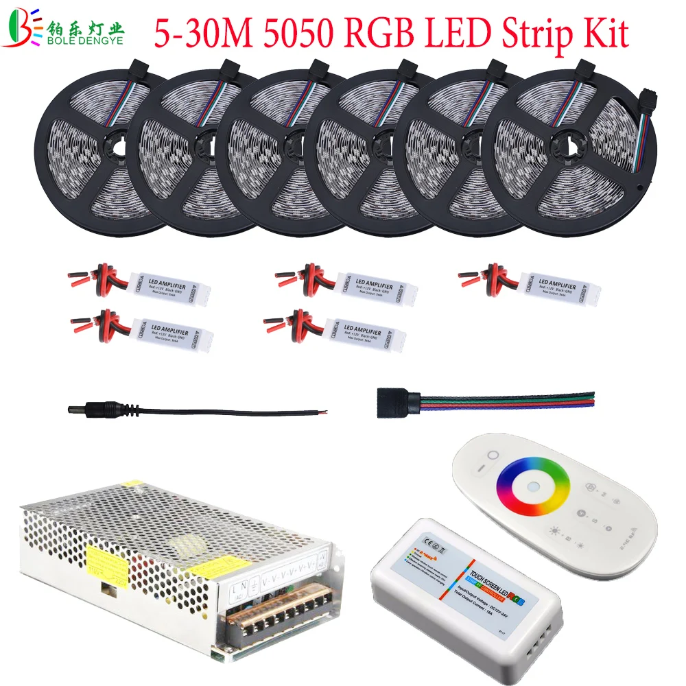 Goede Kopen 30 M 5050 RGB LED Strip Waterdicht Diode Tape Licht 10 M 25 M 20 M 15 M + 2.4G RF RGB Controller Versterker DC12V Voeding Volledige Kit Goedkoop
