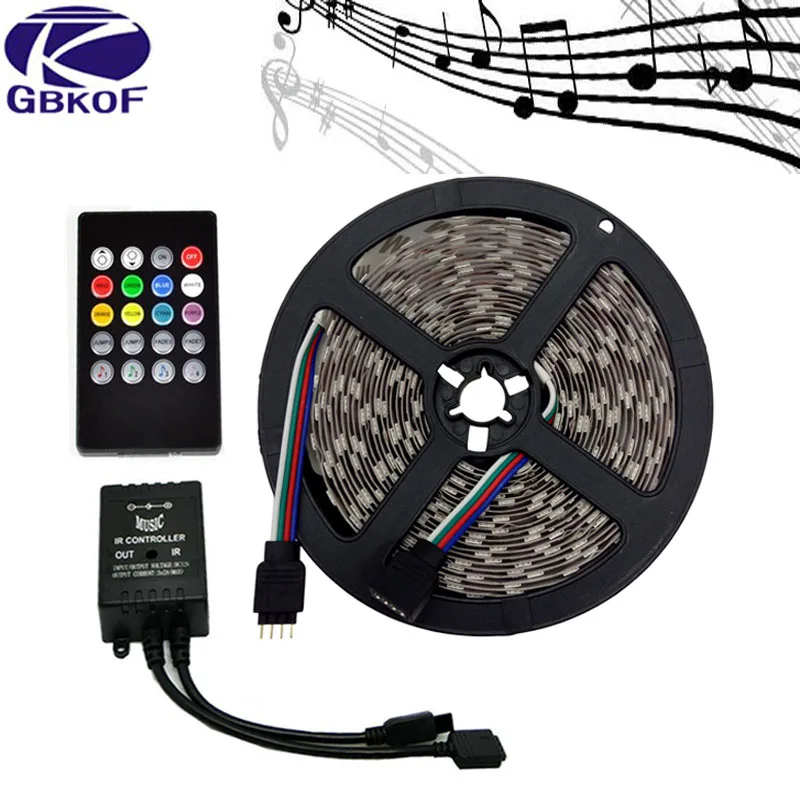 . Goede Kopen Muziek LED Strip 5 m SMD5050 Waterdichte 60 LEDs M RGB Strips LED Strip Licht + Muziek Sound Sensor IR Controller 24 toetsen 44 toetsen Tape Goedkoop.