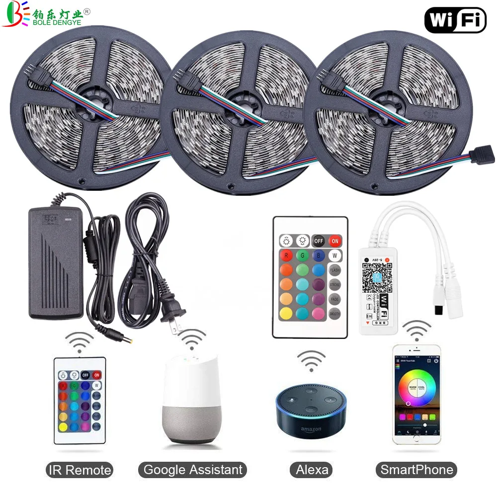 Kopen Goedkoop LED Strip Verlichting SMD 5050 RGB Tape Lint 12 v 150 leds Niet waterdicht Flexibele Touw String 44Key Muziek Bluetooth wiFi Controller Prijs