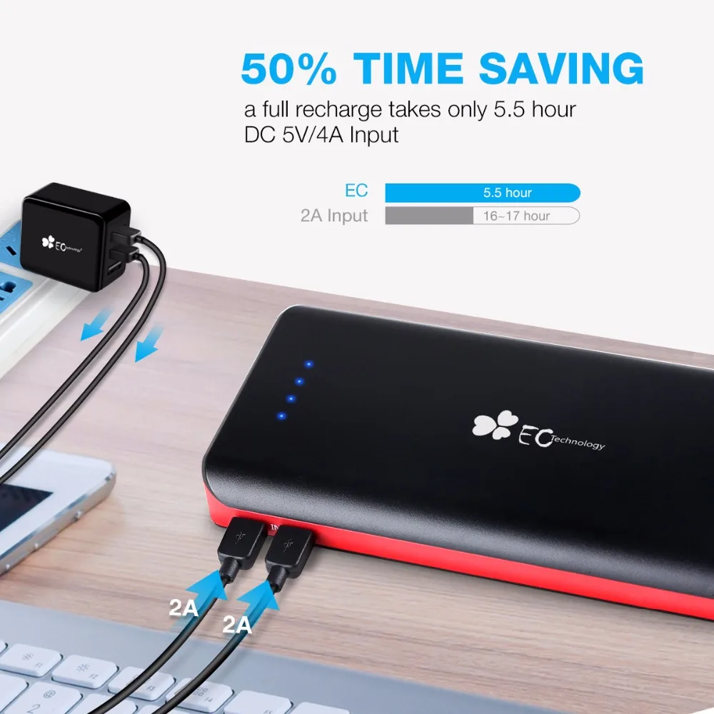 Beste Kopen EC Technologie 2 Micro USB Draagbare Mobiele Oplader met Auto IC Power Bank 2 Oplaadkabel 20000 mah Externe Lader poverbank Goedkoop