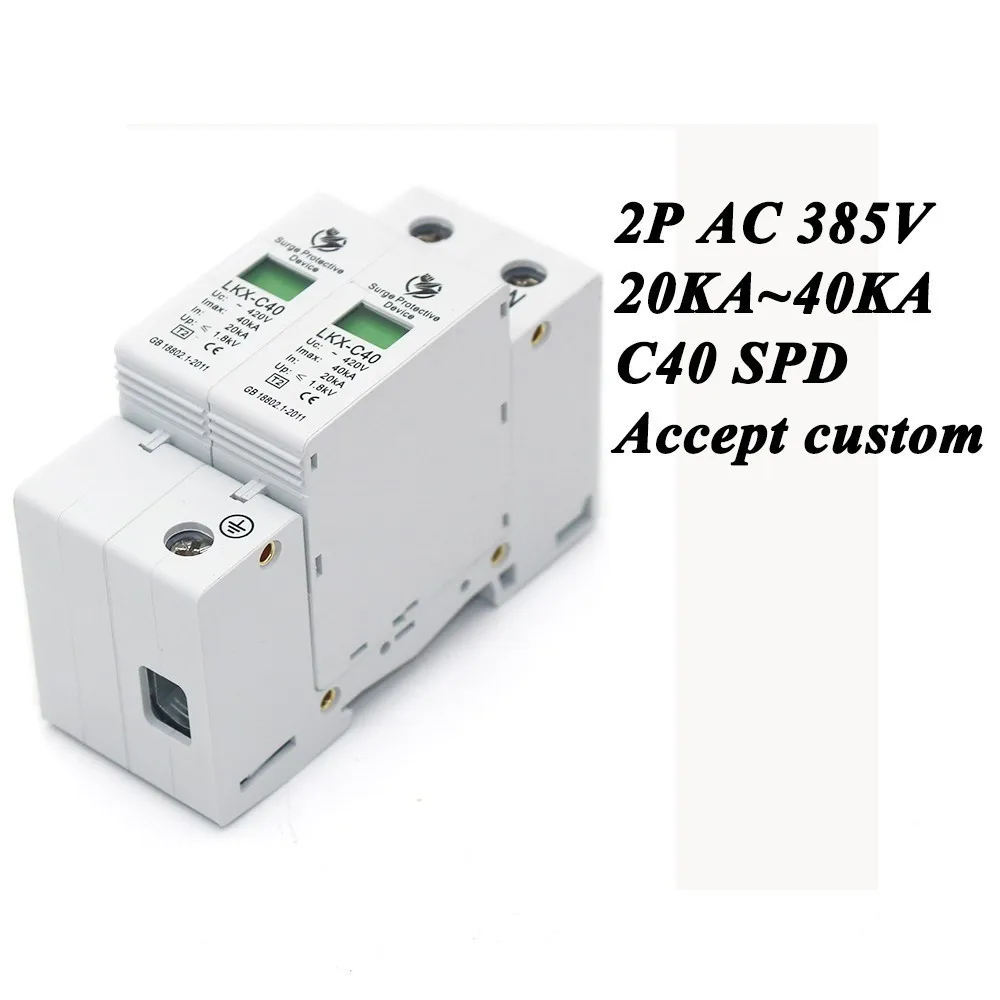 Kopen Goedkoop Hot koop C40 2P 20KA ~ 40KA ~ 385 v AC SPD Huis Surge Protector Beschermende Low voltage Afleider Apparaat 1 p + N bliksembeveiliging Prijs.