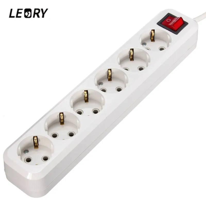 Beste Kopen LEORY 6 AC Power Sockets 10A 250 V Power Strip EU Plug overbelasting Schakelaar Overspanningsbeveiliging 6 Outlet Extension Lead Adapter 1.5 M Kabel Goedkoop