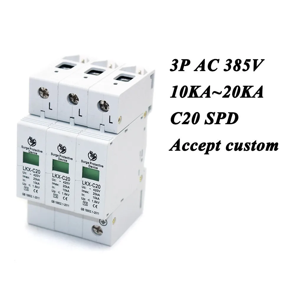 Kopen Goedkoop Hot koop C20 3P 10KA ~ 20KA ~ 385 v AC SPD Huis Surge Protector Beschermende Low voltage Afleider Apparaat 2 p + N bliksembeveiliging Prijs
