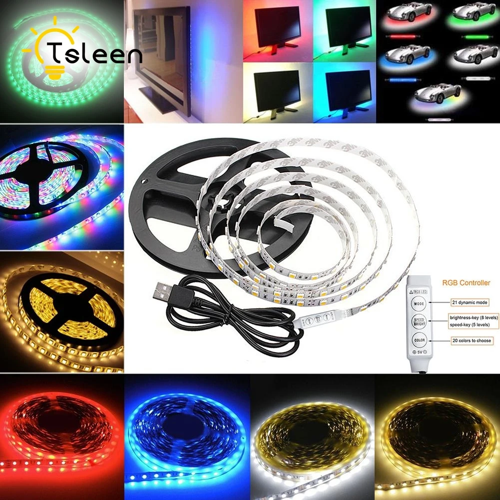 Goede Koop TSLEEN LED Strip 5050 Waterdichte 5 V 50 CM 2 M 5 M Usb kabel Power LED Strip Lamp Flexibel LED Light RGB RGBW 3528 LED Strip Goedkoop