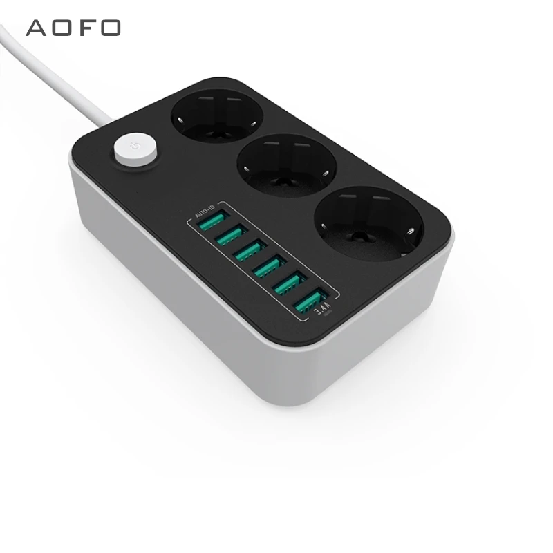 Kopen Goedkoop AOFO Netwerk Filter 3 Outlet Overspanningsbeveiliging Stekkerdoos Met USB Opladen 6 Poorten 5.4A 27 W, 5Ft Zware Verlengsnoer Online