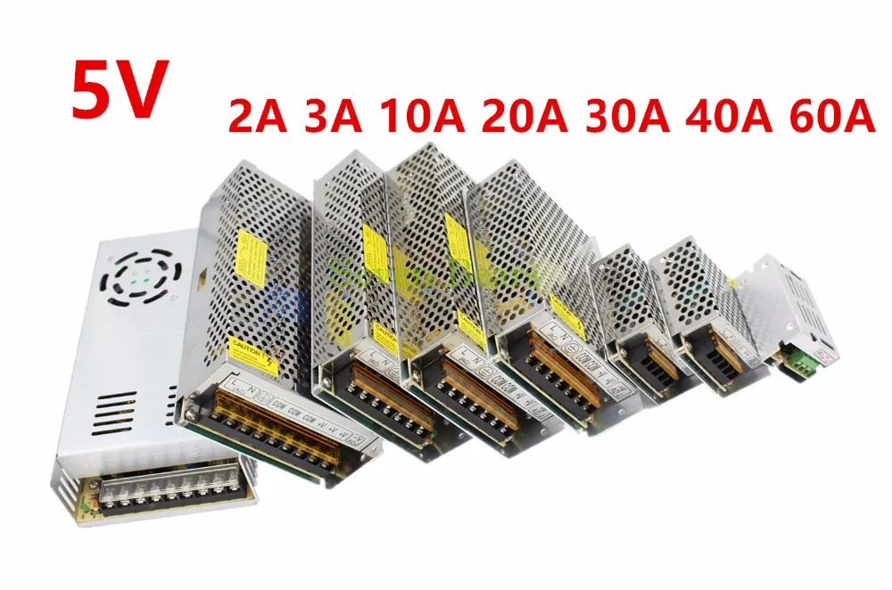 . Beste Koop DC5V 2A 3A 10A 20A 30A 40A 60A Schakelaar Voeding Adapter Transformator AC110V 240V om DC5V Adapter Voor LED Strips Light WS2812 Goedkoop.