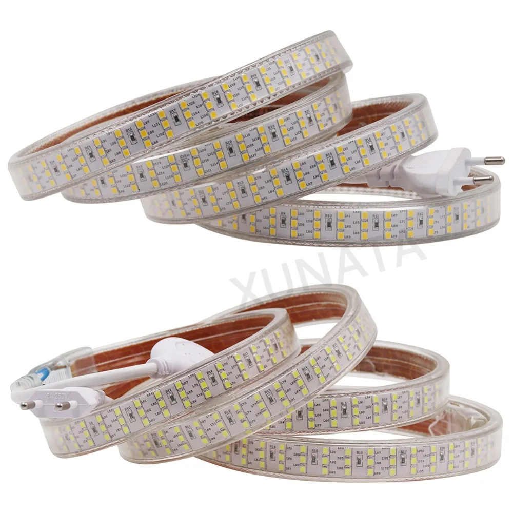 Beste Koop Drie Rij SMD 2835 LED Strip Met EU Plug 220 v 276 Leds m Waterdichte LED Tape Touw Licht flexibele Led Strips Warm Wit Verlichting Goedkoop.
