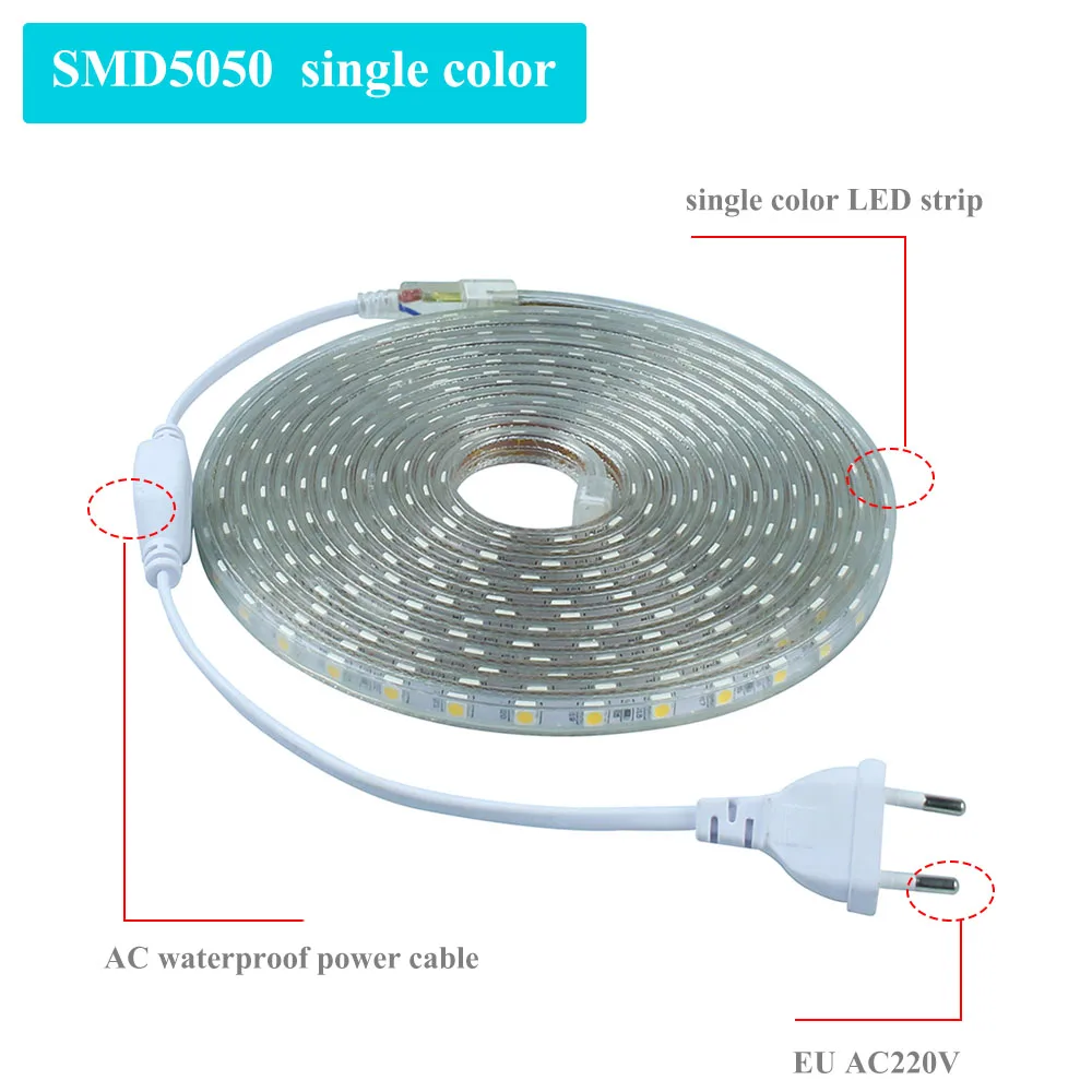 Beste Koop ECLH LED Strip Flexibele light 60 leds m Waterdichte led light SMD 5050 AC 220 v + Stekker 1 m 2 m 3 m 4 m 5 m 6 m 7 m 8 m 9 m 10 m 15 m 20 m Goedkoop
