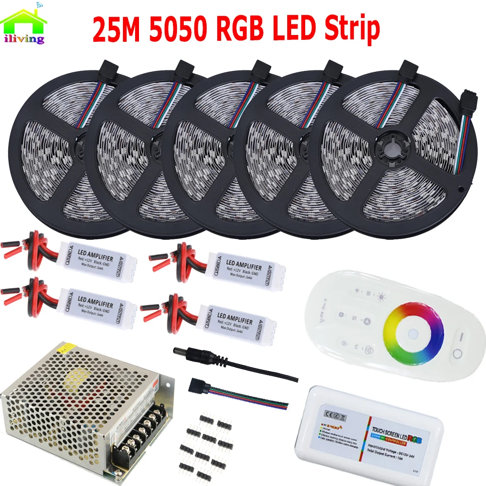 Kopen Goedkoop 25 M 20 M RGB LED Strip 5050 Volledige Kleur Flexibele Light Tape Waterdicht 2.4G Draadloze RF Afstandsbediening RGB Dimmer Controller AC Power Online