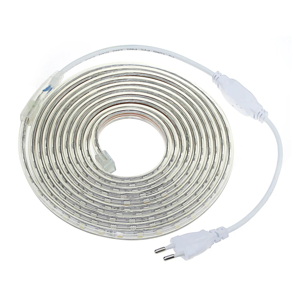 Beste Koop LED strip licht IP67 AC220V 60LED m Waterdicht Tira led 5050SMD zwembad verlichting 1 m 25 m Outdoor tuin diode tape Touw Set + EU Plug Goedkoop