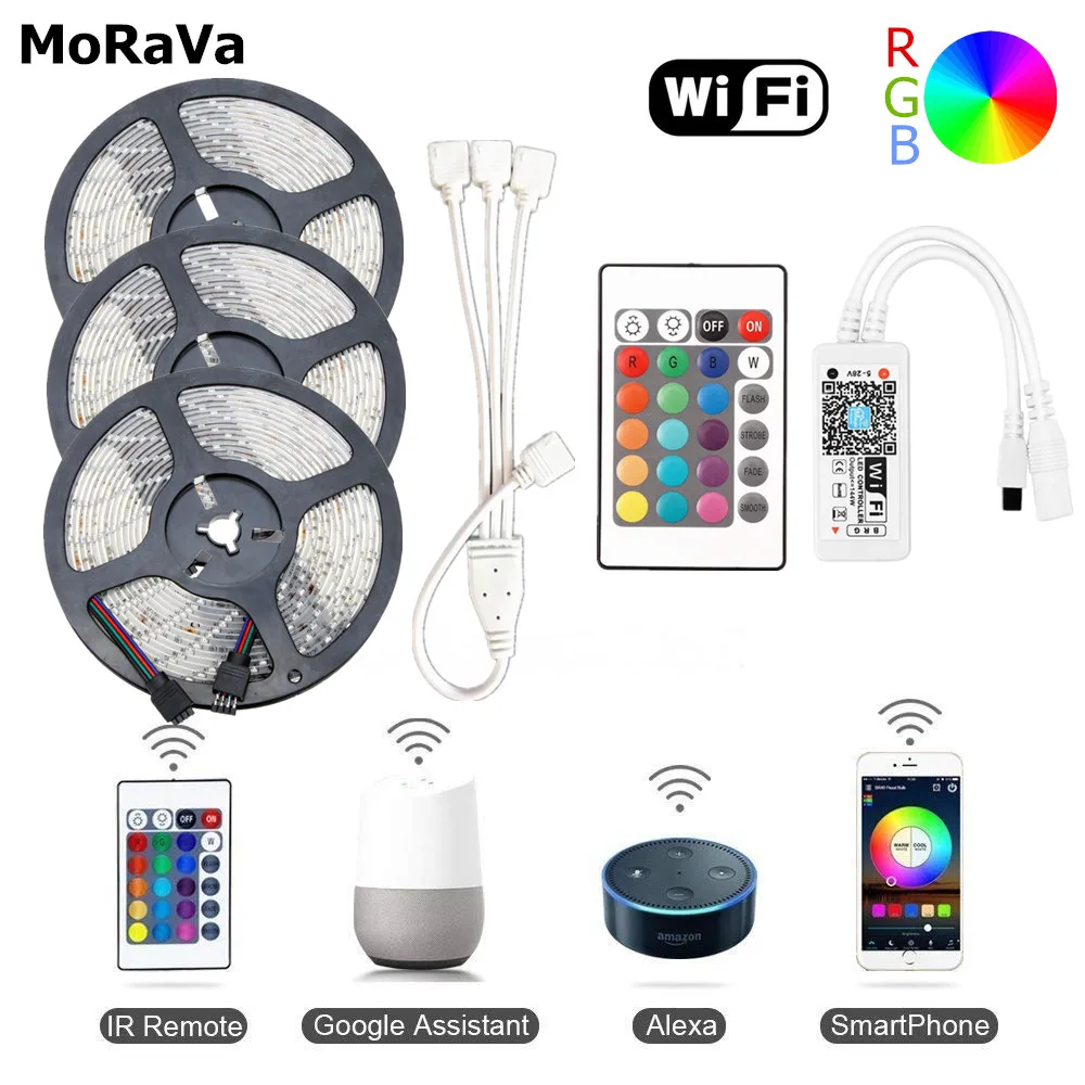 . Kopen Goedkoop 5 m 10 m WiFi RGB LED Diode Tape SMD 2835 12 v Waterdichte LED Light Strip 300 leds Flexibele touw Lamp + WiFi LED Controller Geen Power Prijs.