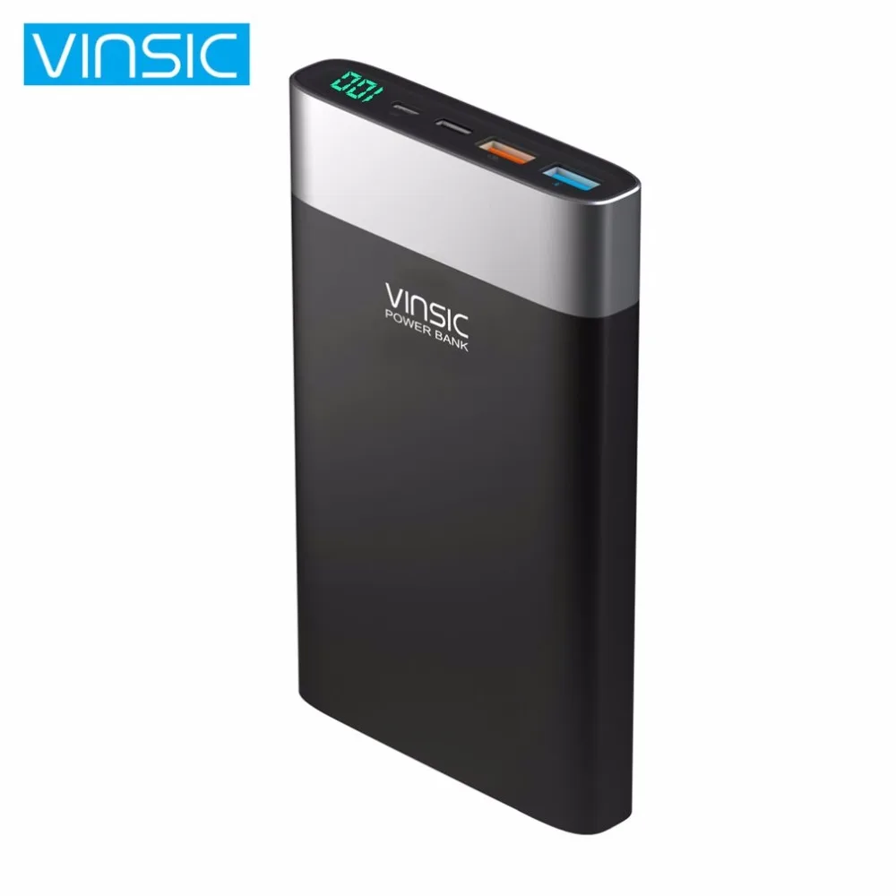 . Beste Koop (Schip uit Rusland) vinsic P3 20000 mah Quick Charge 3.0 Power Bank QC.3.0 Type C Externe Batterij Oplader voor iPhone X Samsung s9 Goedkoop.