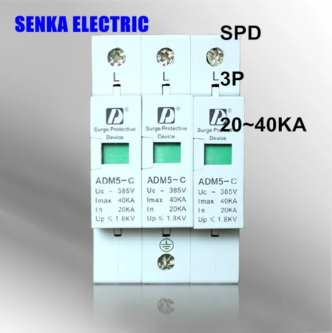 Beste Koop SPD 20 40KA 3 P afleider bescherming apparaat elektrische huis overspanningsbeveiliging C ~ 385 V AC Goedkoop