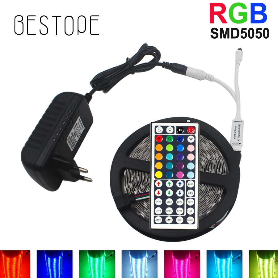 Beste Kopen 10 M RGB LED Strip 5 M 5050 SMD LED Tape Flexibele lint Waterdichte IR Afstandsbediening DC 12 V Power Adapter Volledige set Goedkoop