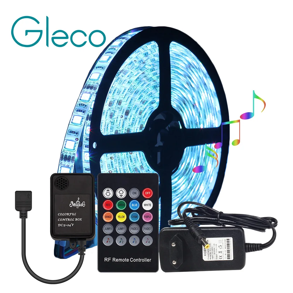 Beste Kopen DC12V LED Strip 5050 RGB met Muziek Sensor Controller 20Key Remote Flexibele LED Strip Licht 5050 60 LEDs m 5 m partij Goedkoop