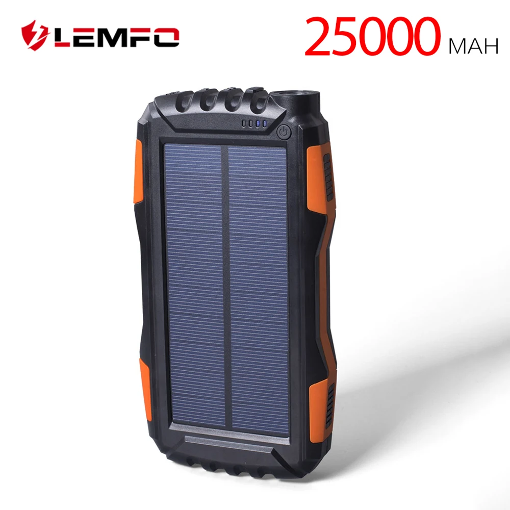 Goede Koop LEMFO Solar Power Bank 25000 mah IP67 Waterdichte Powerbank Draagbare Mobiele Telefoon Oplader Outdoor LED Verlichting Externe Batterij Goedkoop