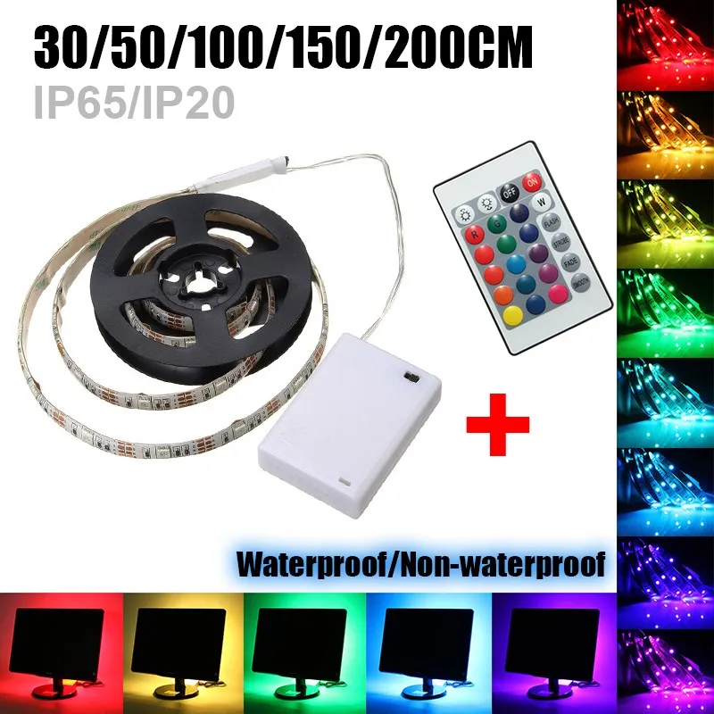 Kopen Goedkoop Flexibele 30 50 100 150 200 cm Led Strip RGB 5050 SMD Waterdicht Niet waterdichte Batterij Met 24Key IR Afstandsbediening Online