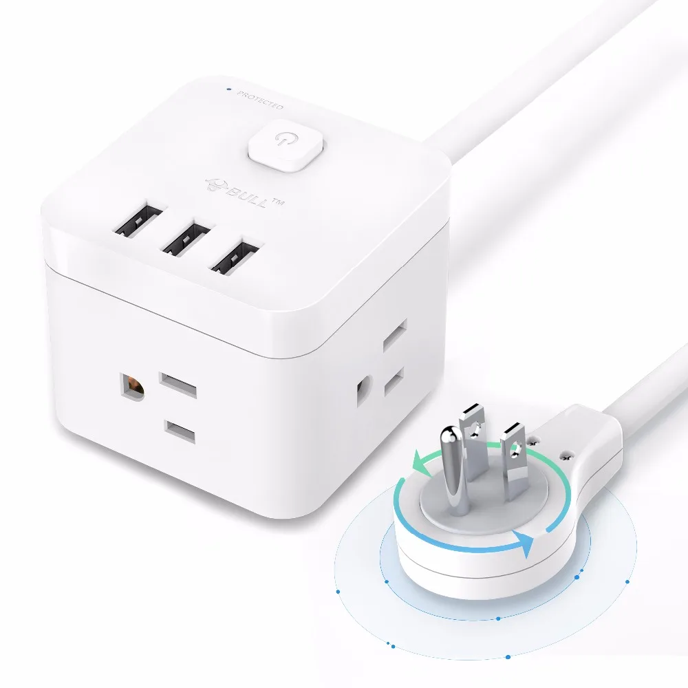 . Kopen Goedkoop BULL Smart Power Strip Surge Protector met Roterende Platte Stekker USB laadstation voor desktop 3 USB 3AC Verlengsnoer Online.