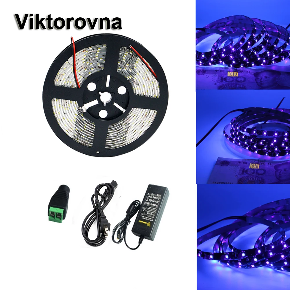 Kopen Goedkoop Uv blacklight 5050 3528 SMD led strip licht 395nm 405nm 5 m waterdicht UV Zwart Licht + 12 v power adapter Ultraviolet Tape lamp Online
