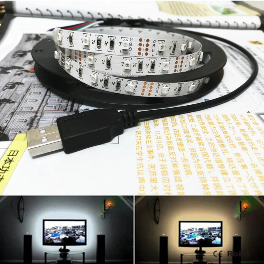 Beste Koop DC 5 V 6 V 50 CM 1 M 2 M 3 M 4 M 5 M Usb kabel Power RGB LED strip licht Tape SMD 3528 bureau Decor lamp Voor computer TV Achtergrond Goedkoop