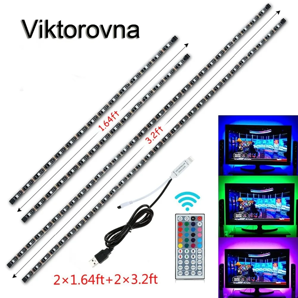 Beste Koop LED TV USB Backlight Licht Kit 5050 SMD Kleur Veranderende TV Stemming Ambient Strip Verlichting voor HDTV Monitor 2x1. 64ft + 2x3. 28ft set Goedkoop